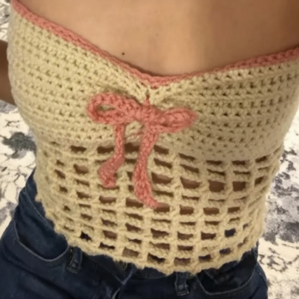 Cute Crochet Mesh Bow Top Pattern Easy to Pair with Denim