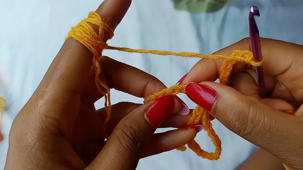 Ch 15, skip 8 chains, 1 sc in the 9th chain.