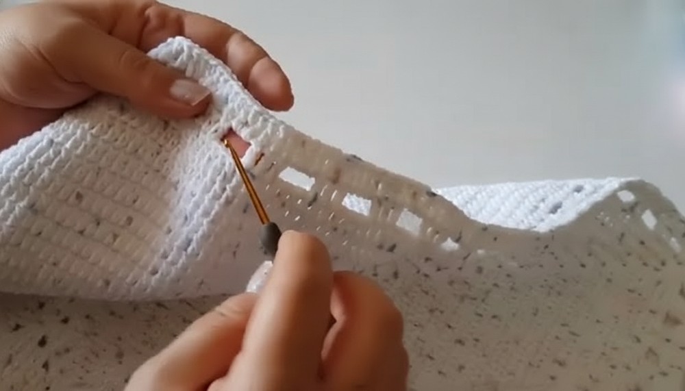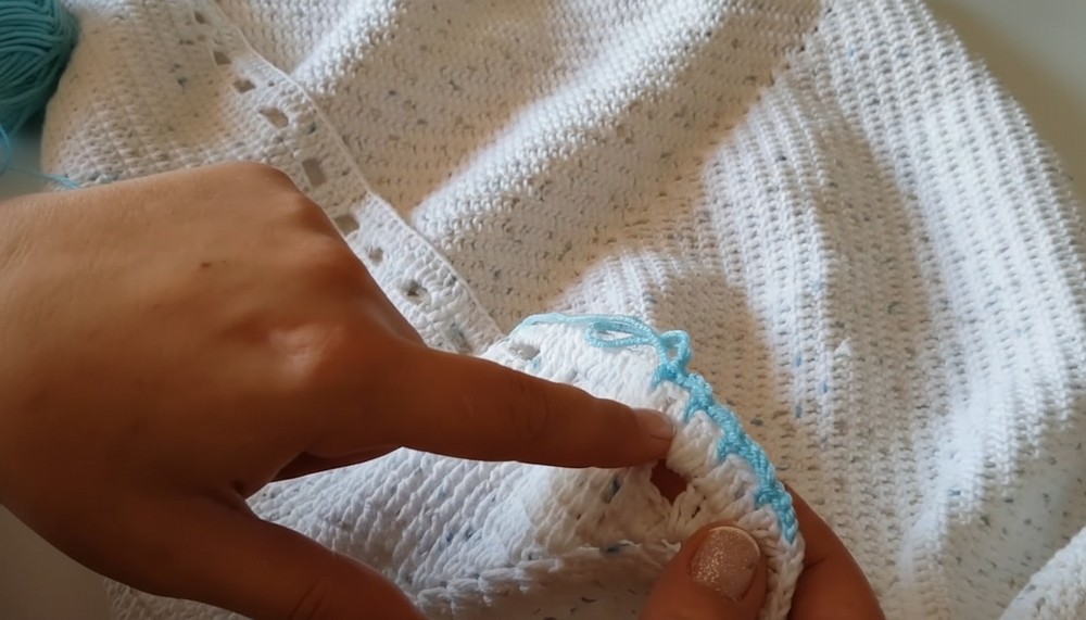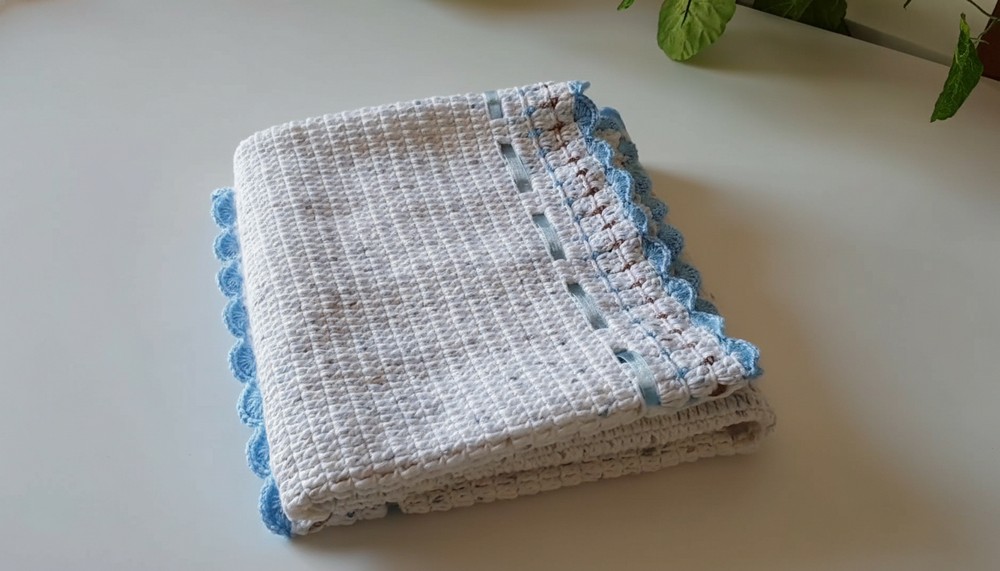 - Optionally, weave thin ribbon through a round near the blanket’s edge for decoration.