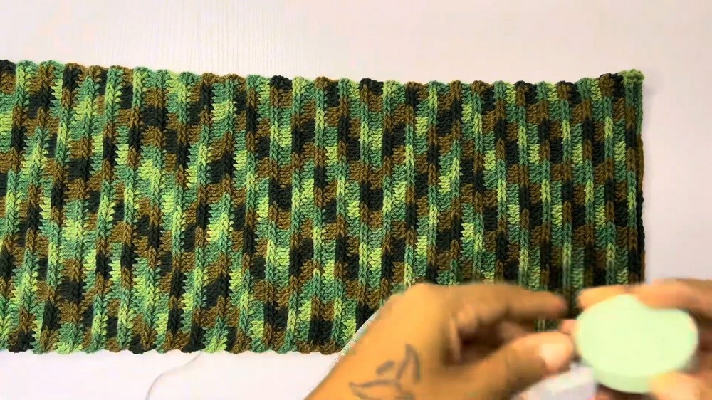 The project is worked vertically, meaning rows run from top to bottom when worn.