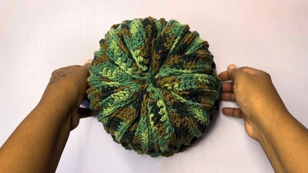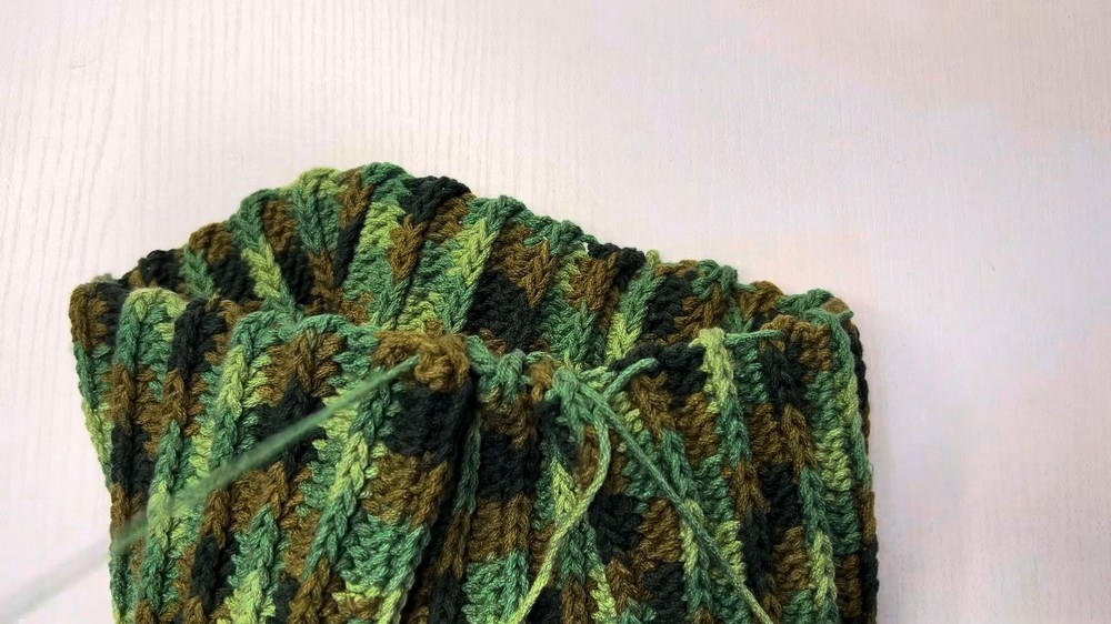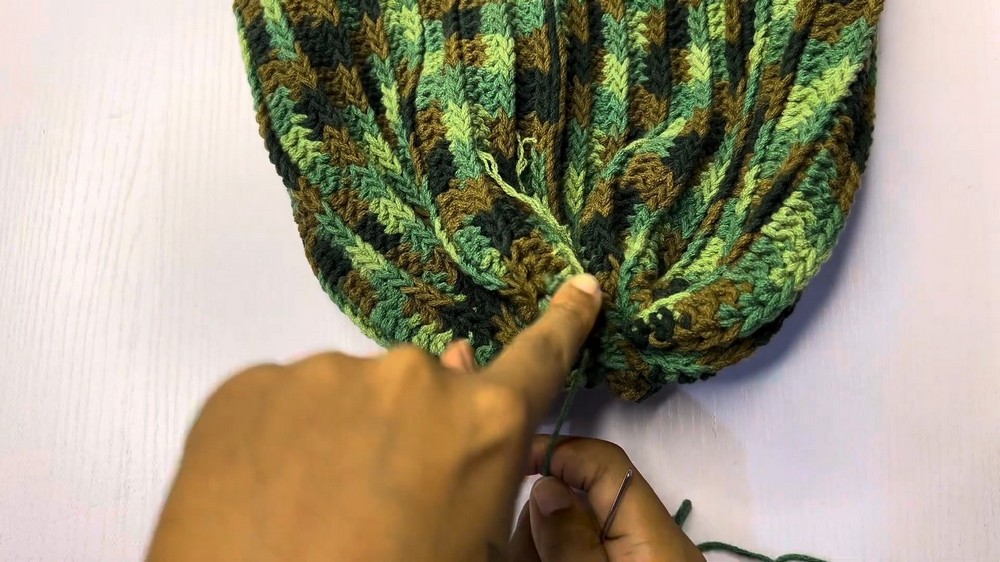 Both short ends of the beanie are joined using the slip stitch method.