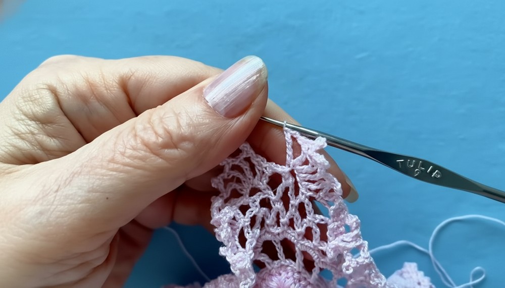 - For more openwork, skip 2 sc between arches as you progress on border rows.