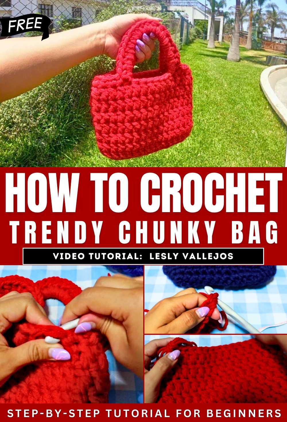Learn how to crochet a chunky bag or handbag that is simple and super easy to crochet for beginners. The project is described as quick and easy, making it a good option for a last-minute gift. The creator mentions using a thick, chunky yarn, or multiple strands of a thinner yarn to achieve a similar result. The video covers creating the base of the bag, working the body in rows with increases to shape it, and adding handles. The tutorial provides two options for the handles: crocheting them separately or as part of the continuous work.