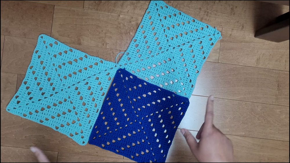 - Repeat the same process to make two additional granny squares, allowing for variations in color if desired.