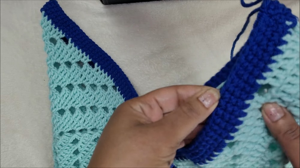 - The edges of the bag’s opening are finished with multiple rows of single crochet.