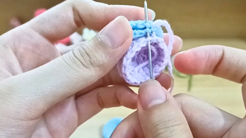 - Finishing: End by cutting the yarn and setting it aside for attachment to other elements later.