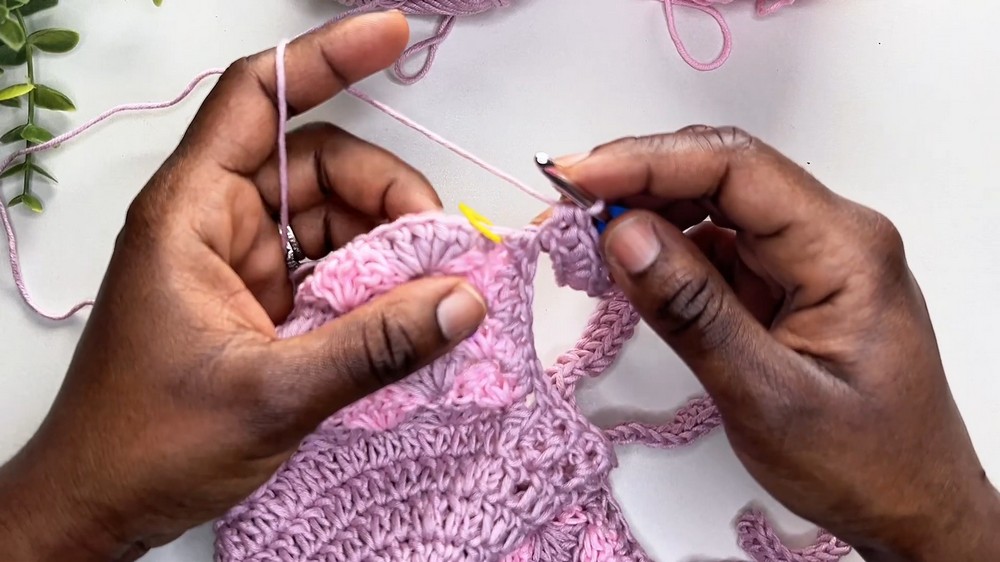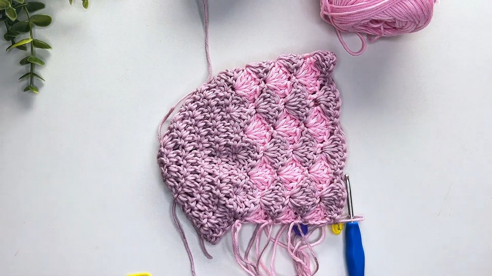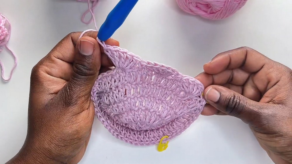 - Mark a specific stitch to begin the shell stitch rows, which create the unique textured pattern of the bonnet.