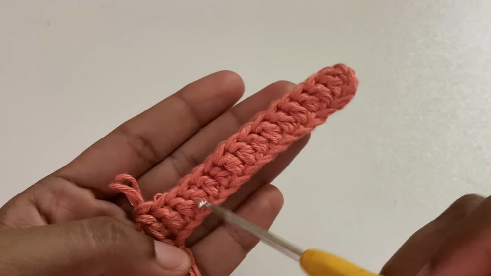 - Each row starts with chain stitches to turn the work and continues working in a straightforward, consistent manner.