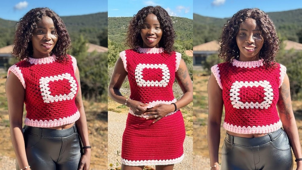 In this tutorial, learn how to create a matching red and pink top and skirt using the granny square stitch designed for beginners. The top features a granny square pattern, combining elegance with a quick design process. Angel provides clear steps on color changes, stitching, and assembling panels, creating a stylish and festive outfit.