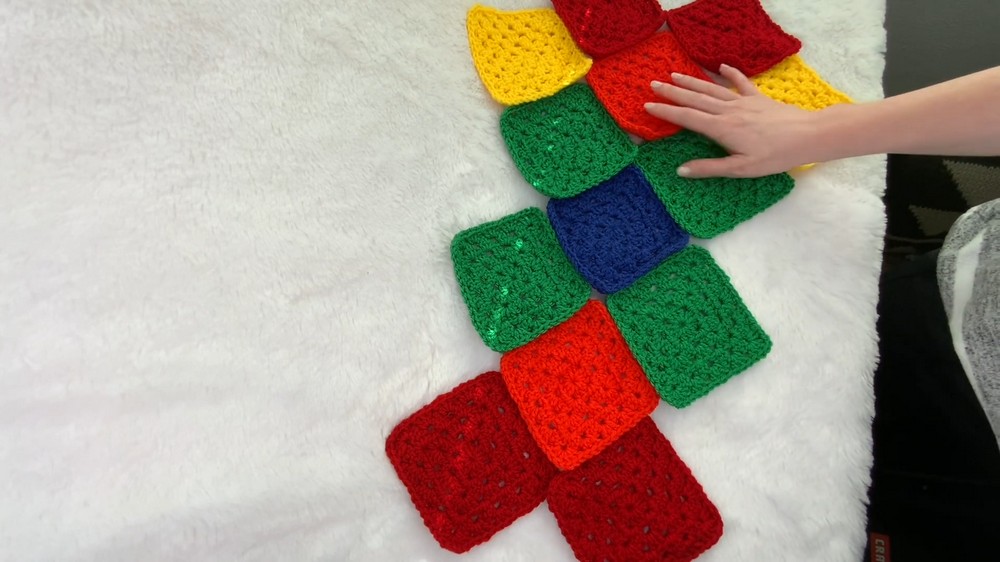 - Arrange the granny squares in a specific order to form the desired shape of the bag.