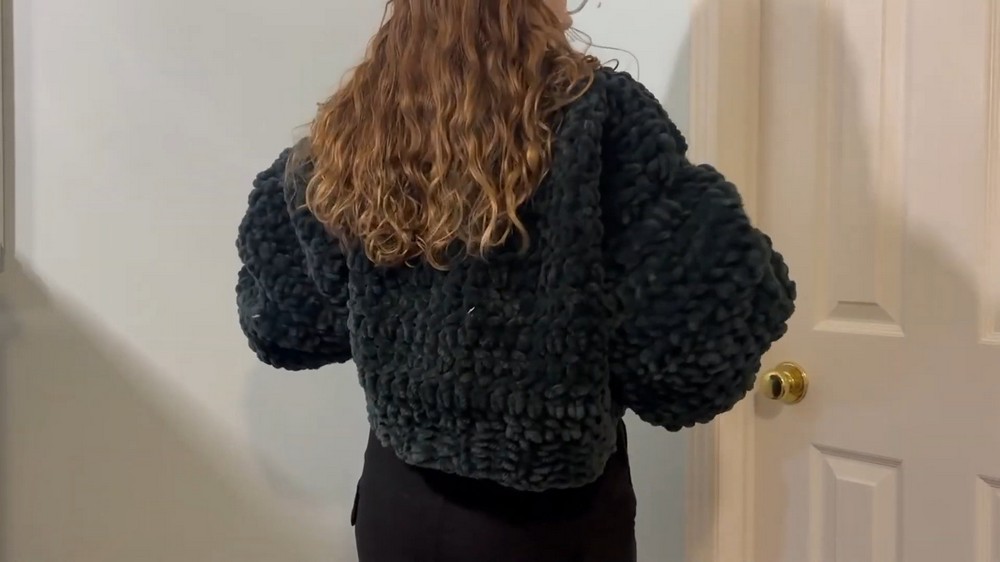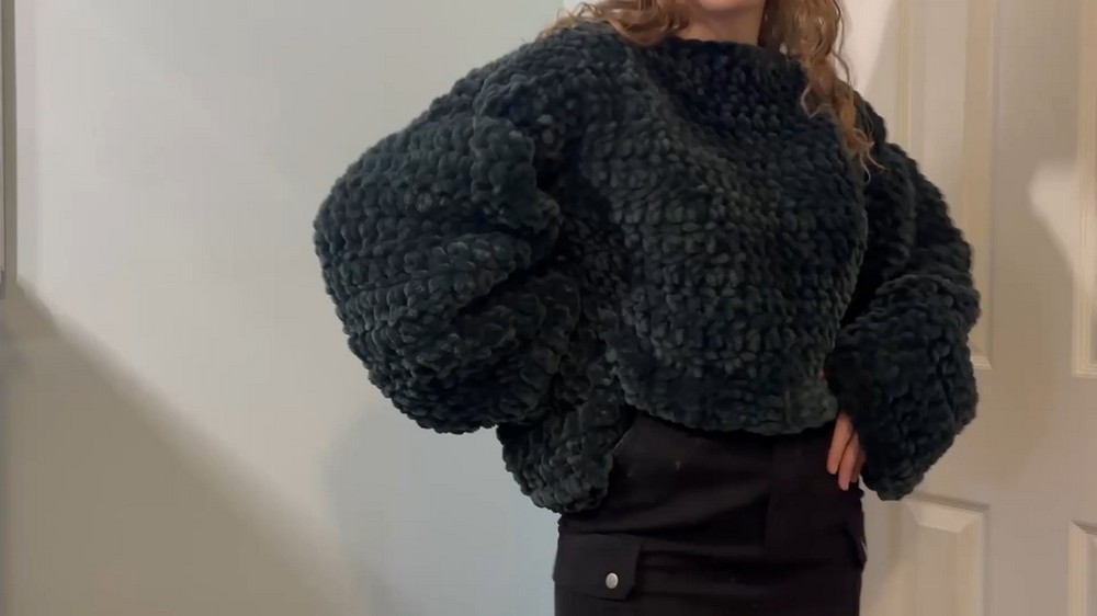 This tutorial builds a cozy chunky sweater with body panels, sleeves, and a clean neckline. Through careful assembly and finishing touches, the sweater offers both a loose fit and a polished look.