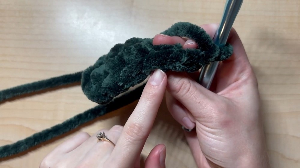 - Perform one double crochet in the first row of the hem and two in each subsequent row.