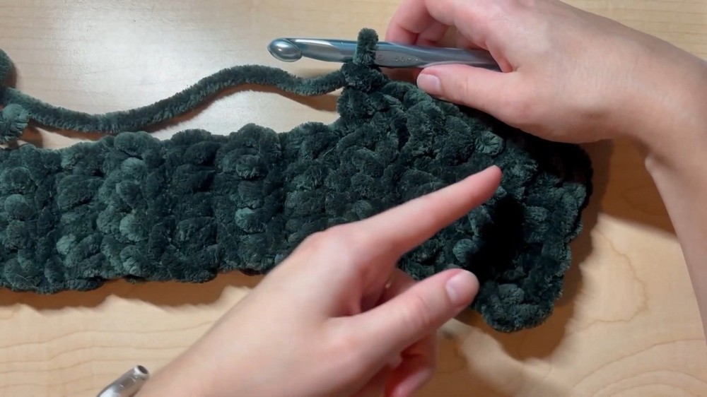 - Construct rows of half double crochets in the back loop only to build the hem.
