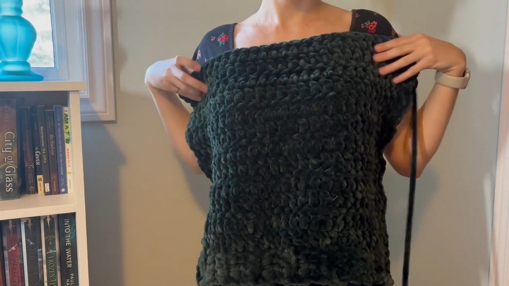 The tutorial also covers finishing touches like creating the neckline and weaving in ends for a clean and polished result.