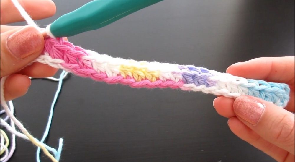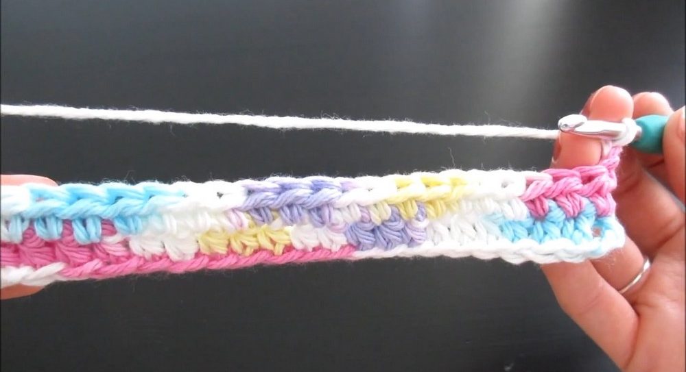 - Create 23 chains to form the base of the dishcloth.