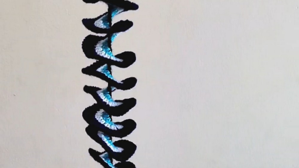 - Lastly, a blue thread is attached to the work.