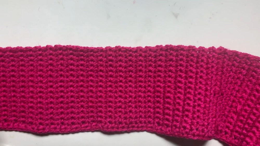 - At the end of the base panel, the edges are prepared for attachment by adding single crochet stitches along their sides.