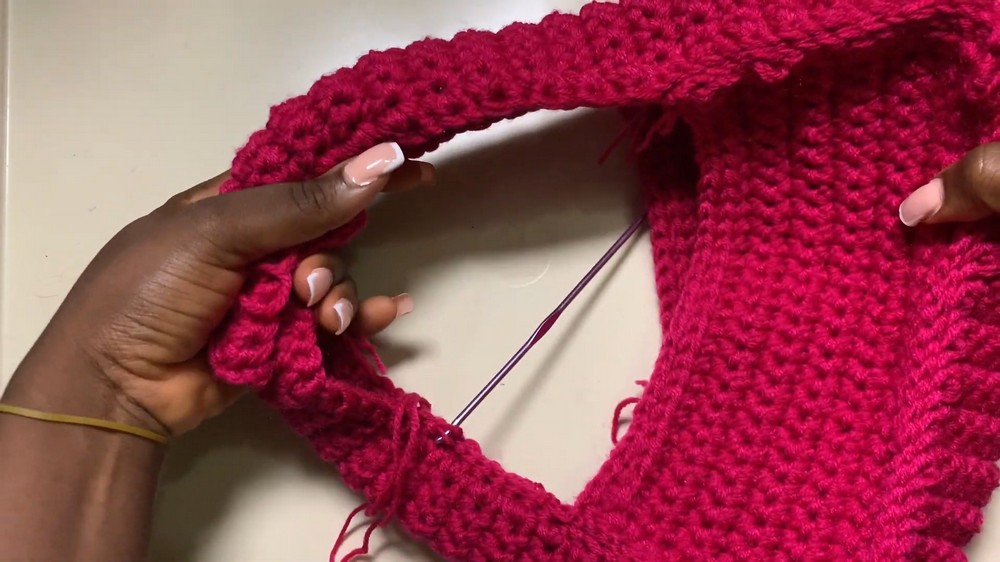 - The edges of the side panels are finished off with additional single crochet stitches for easier alignment and attachment to the base.