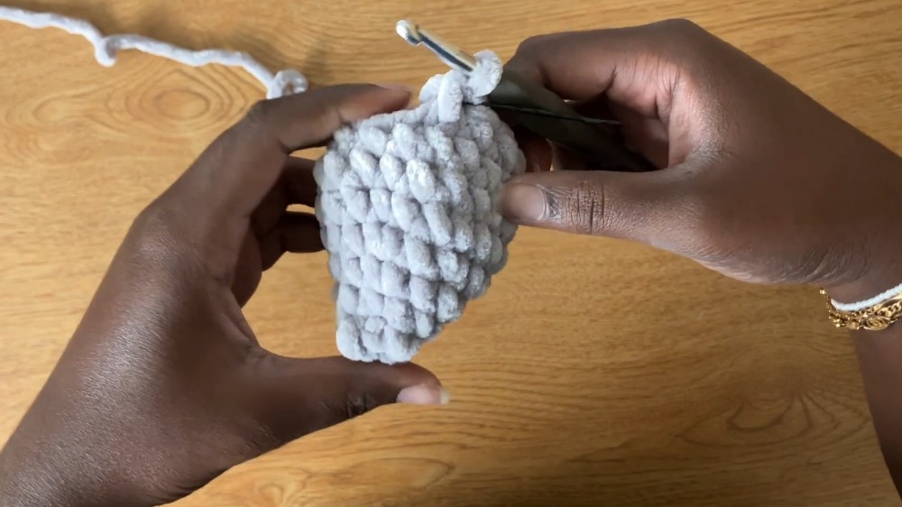 - Decreasing & Closing: She decreases to shape the top of the head and closes it with a cinching technique.