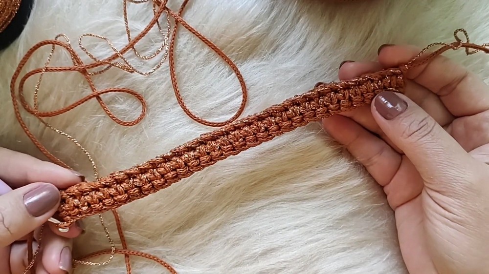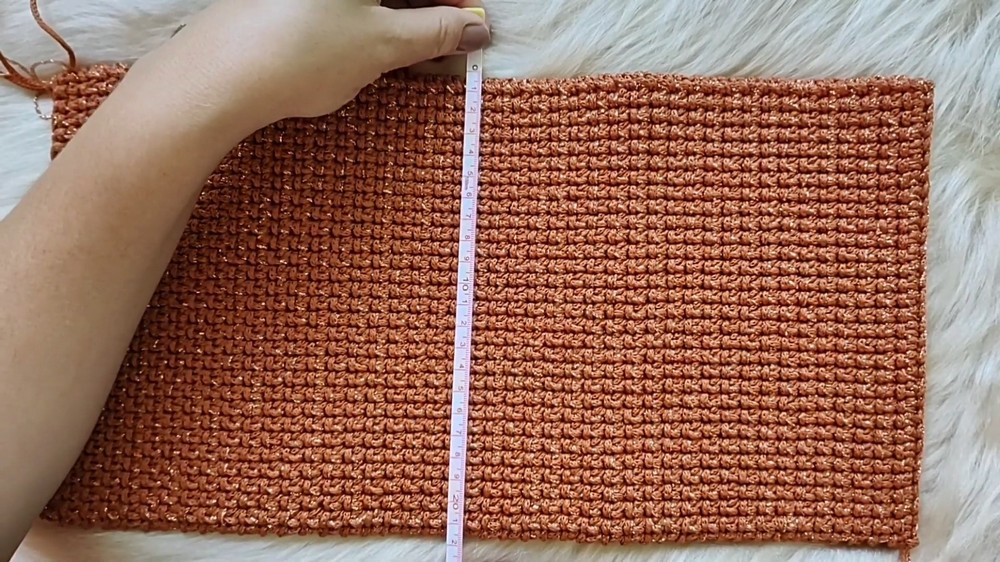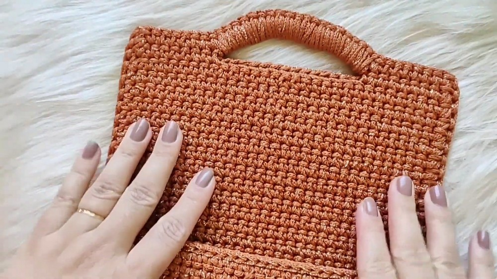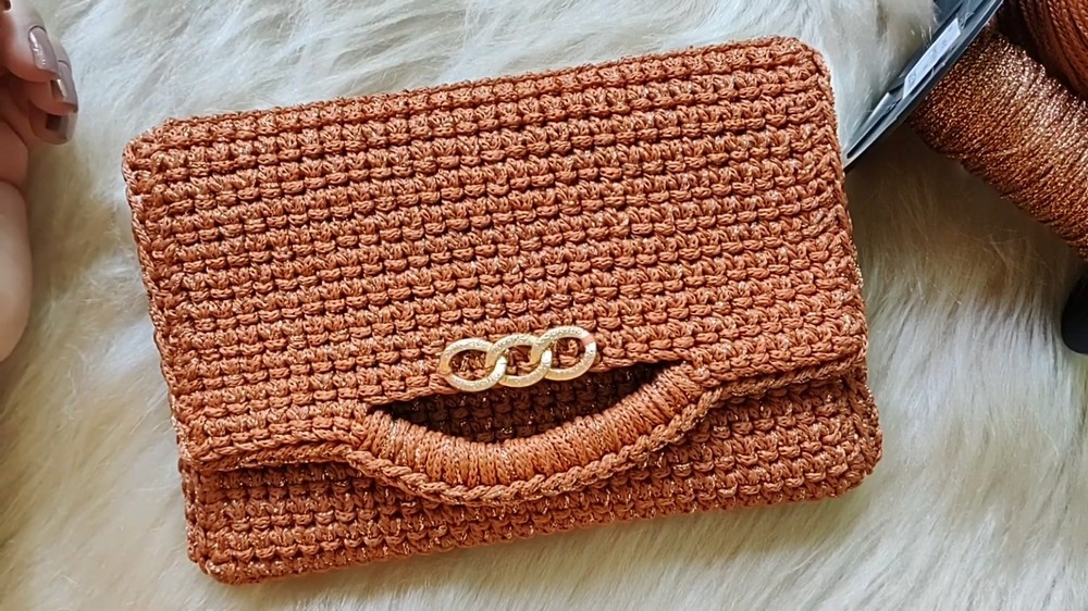- The body of the clutch requires several rows of stitches, creating a rectangular shape.