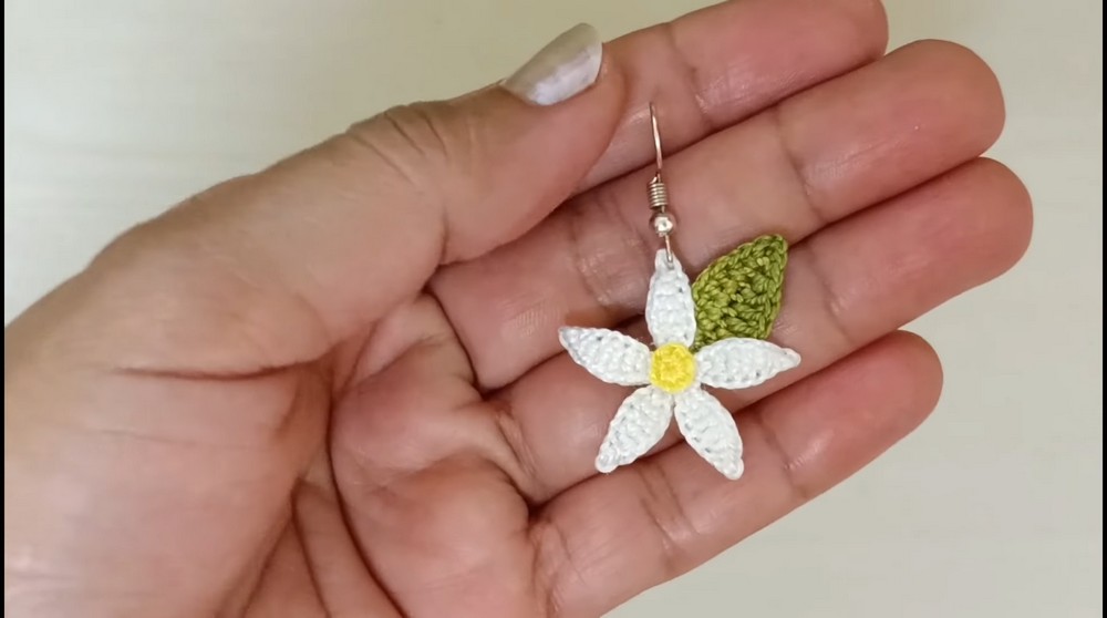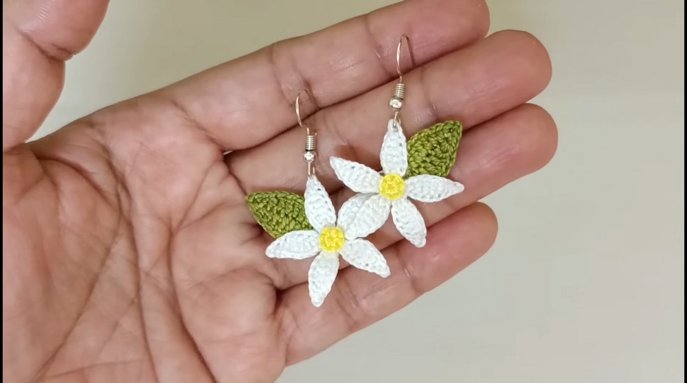 After all the pieces are crocheted, the creator shows how to assemble them by trimming threads, applying glue and starch, and finally attaching an earring hook. The video concludes by showcasing the finished pair of crocheted earrings. So, follow through with us for the complete tutorial.