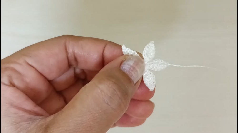 Flower Center: A small circular piece is crocheted to serve as the center of the flower.