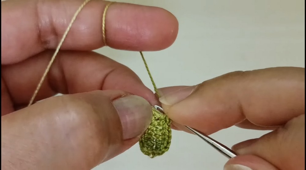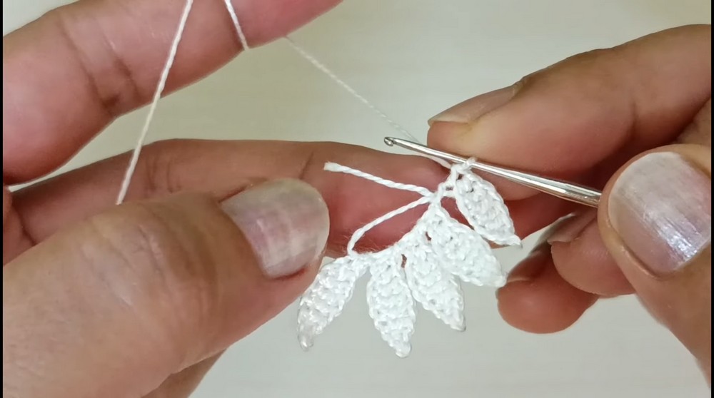 Leaf: A leaf shape is crocheted using a similar pattern of stitches.