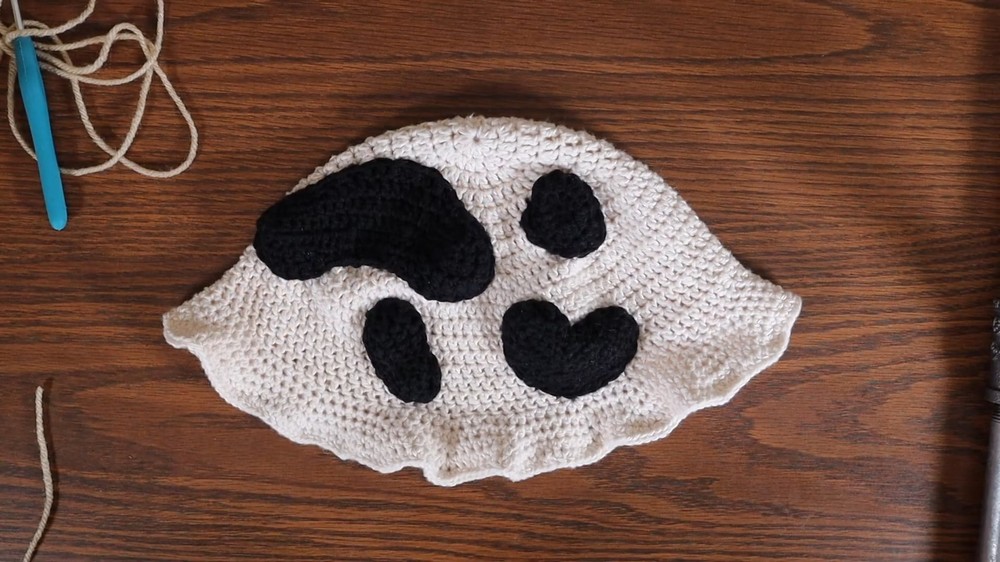 - Grace moves on to crocheting the frilly edges of the bucket hat, switching from double crochets to half-double crochets for stiffness.