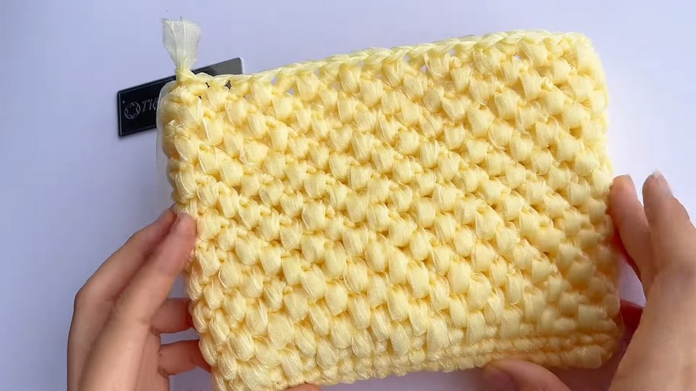 Here is a tutorial on crocheting a unique basketweave crossbody bag using 2.5cm ribbon yarn, including 21 rows of alternating single crochet stitches, creating a soft, sturdy bag shape. Finish with a slip stitch, hide the yarn, glue a bow, and decorate with your favorite motifs. The bag is finished with a magnetic snap for convenient use, suitable for everyday use or as a cute gift.