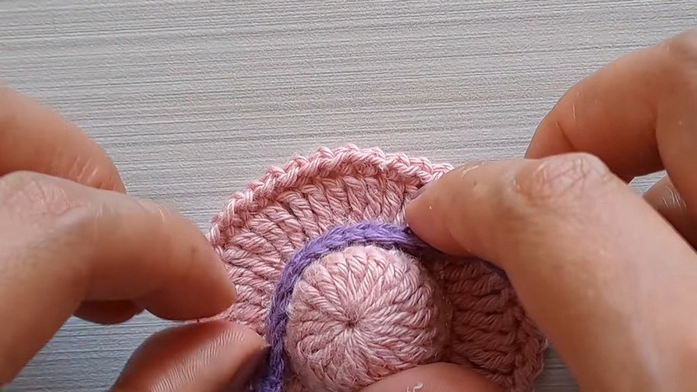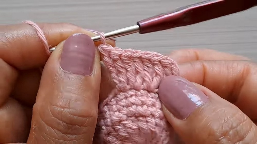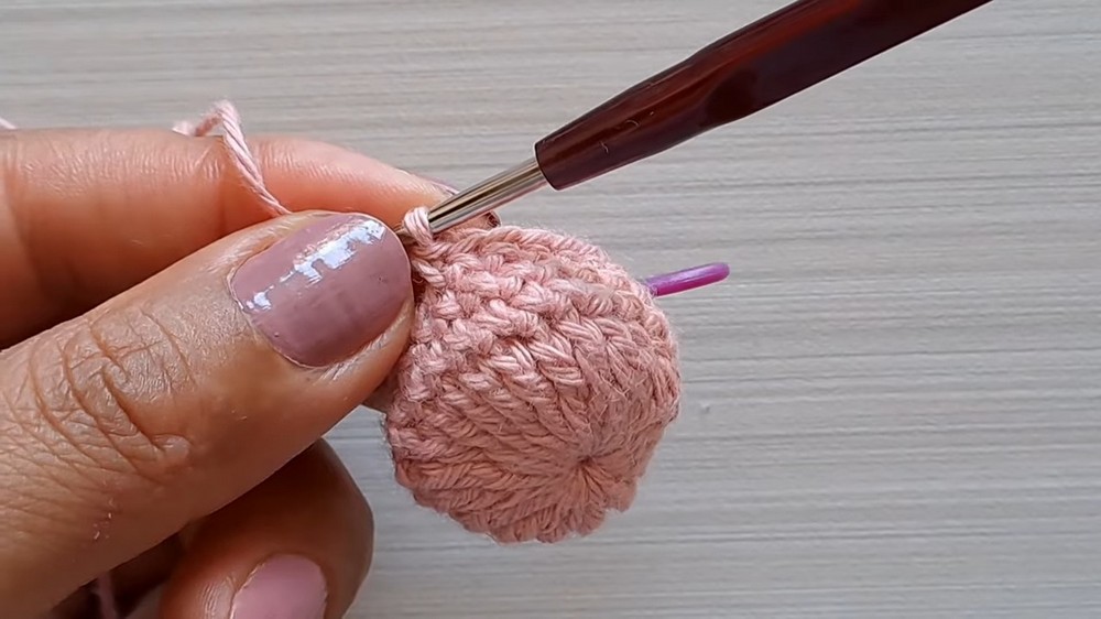 - For the second round, one chain is made, followed by a single crochet in the same place.