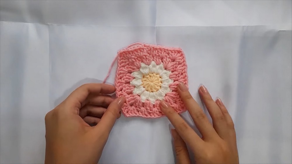- Continue crocheting rows to expand the square, ensuring each corner is made symmetrically.