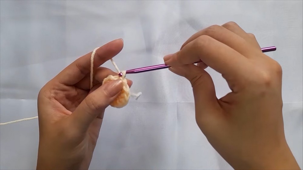 - Start by using yellow yarn to make a magic ring.