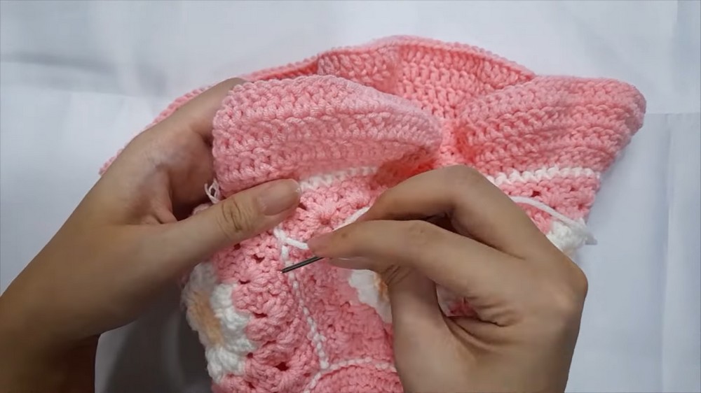 At the end of the tutorial, you create a fully functional and stylish daisy bucket hat. This tutorial combines basic granny square techniques with decorative elements, offering a rewarding crochet project.