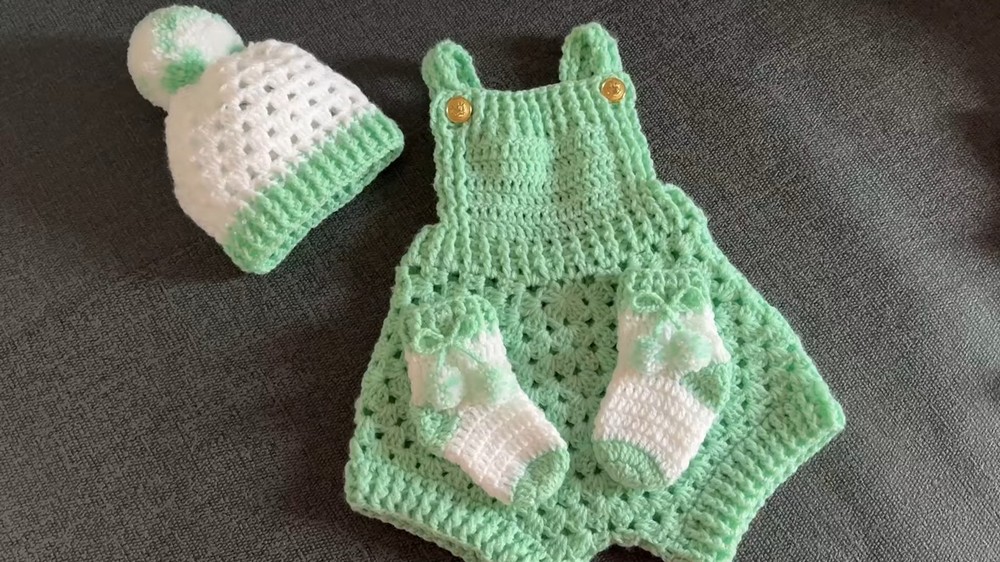 Crochet an adorable and comfortable baby romper, suitable for beginners. Using mint and white double knitting yarn, you can crochet sizes ranging from newborn to two years. It also covers creating matching accessories like baby hats and socks. With clear instructions, tips for finishing techniques, and adjustable sizing details, this guide is perfect for baby shower gifting.