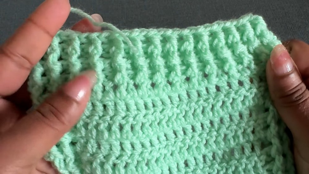 - Ribbing is then crocheted, involving front and back post double crochet. The ribbing adds elasticity and a finished look to the legs.