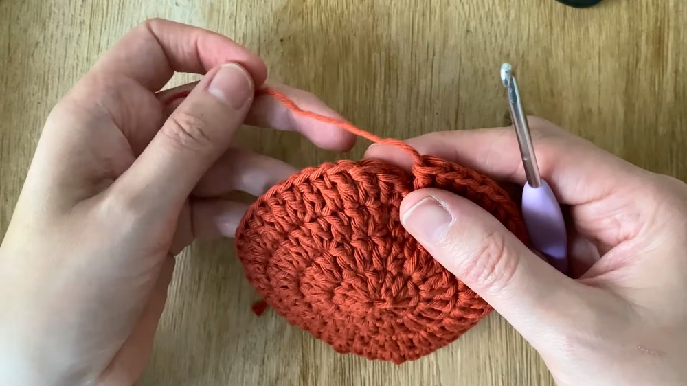 - After completing the round, the magic circle is tightened by pulling the tail, and the round is joined seamlessly to maintain an even shape.