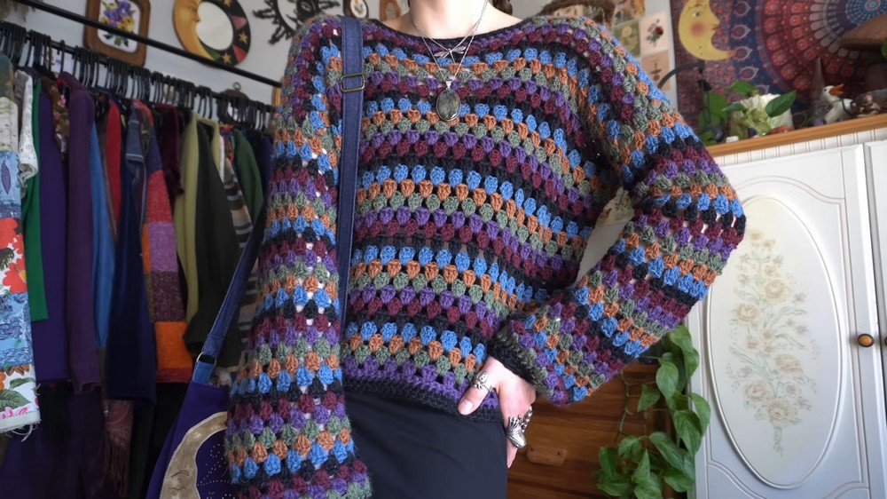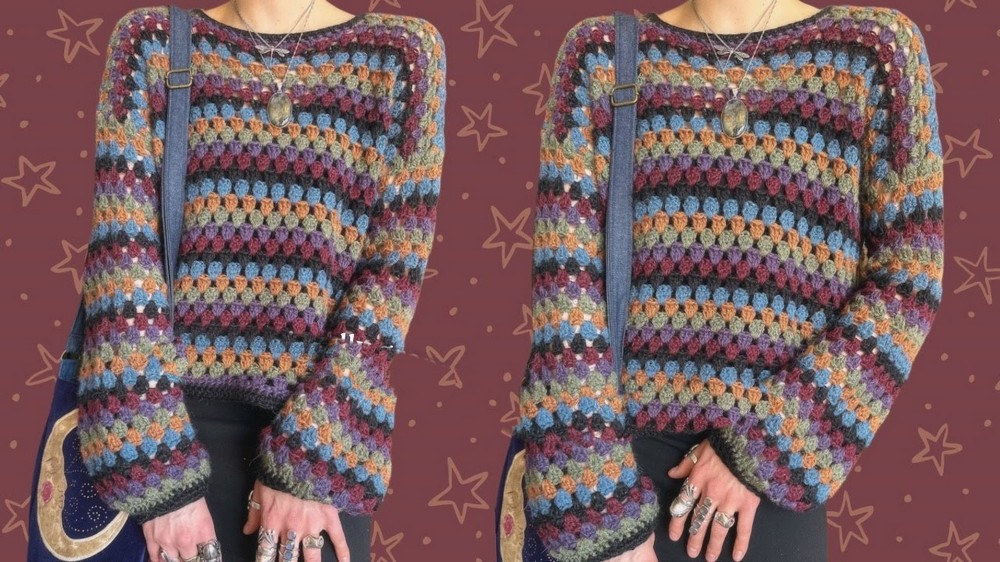 - The tutorial walks viewers through creating a beginner-friendly granny stitch sweater.
