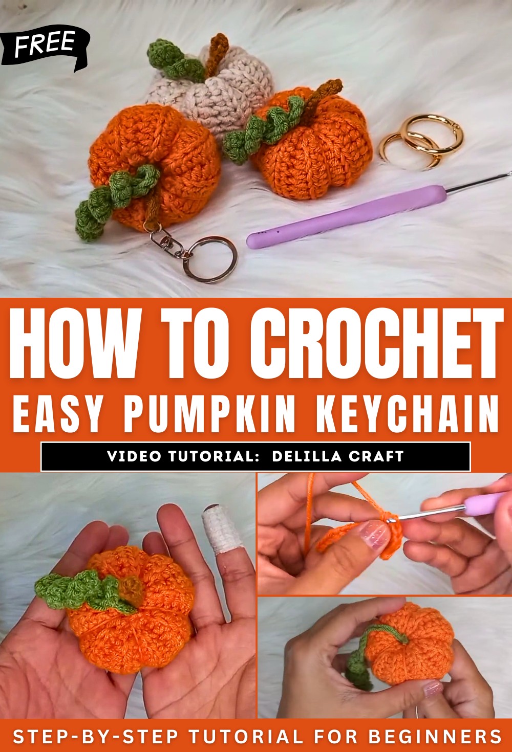 This video is a detailed tutorial on how to crochet a pumpkin keychain. The tutorial covers everything from the materials and tools needed to crocheting each part, and finally assembling the finished keychain.