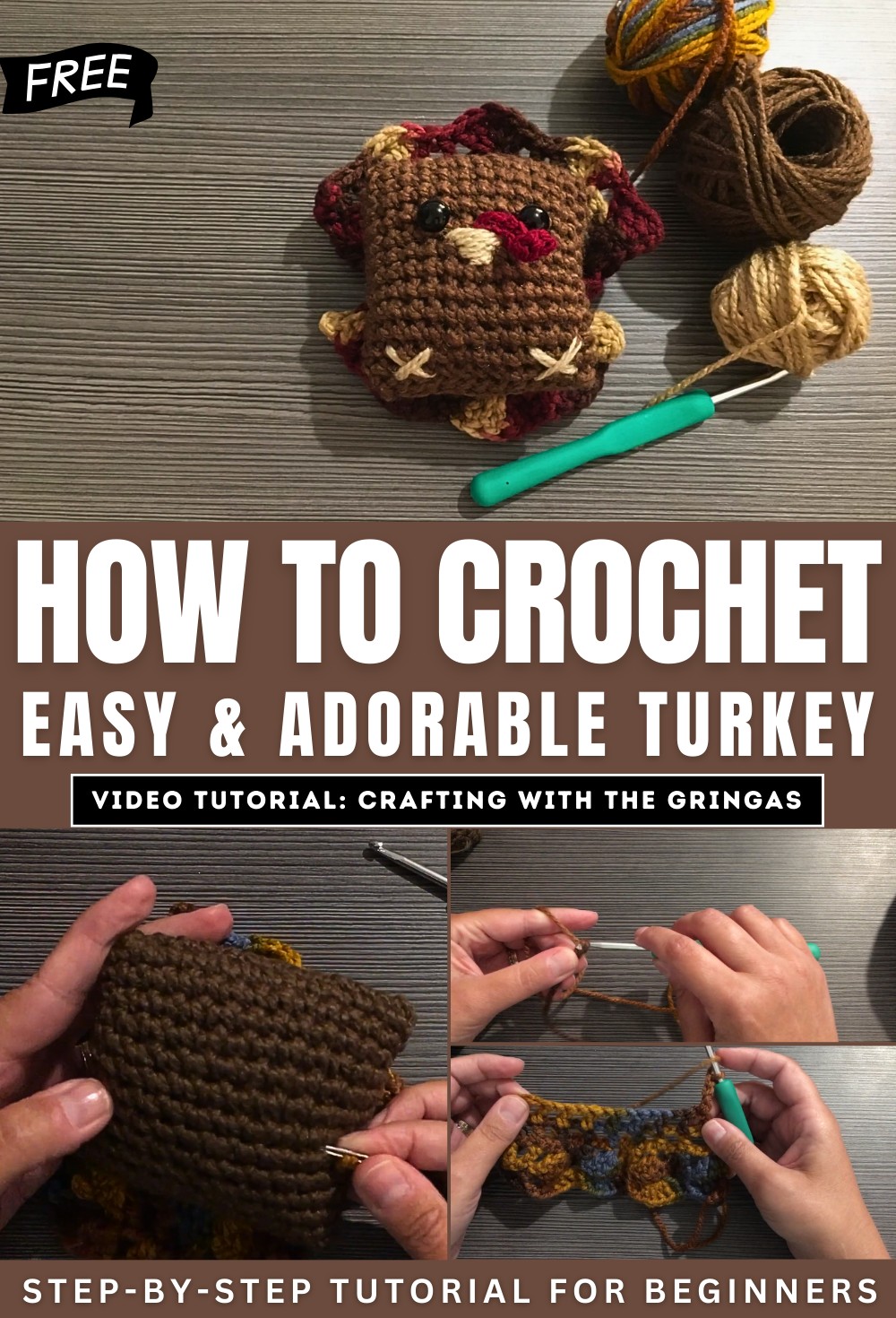 In this post, learn how to crochet an adorable turkey crochet feathers using variegated four-weight yarn and a 4.5mm hook. The step-by-step guide demonstrates essential crochet techniques, such as creating slip knots, chains, double crochets, and shell stitches, with clear explanations for every phase of the project. The video covers multiple rounds, including forming shells, working along the bottom chains, and attaching the feathers to the turkey.