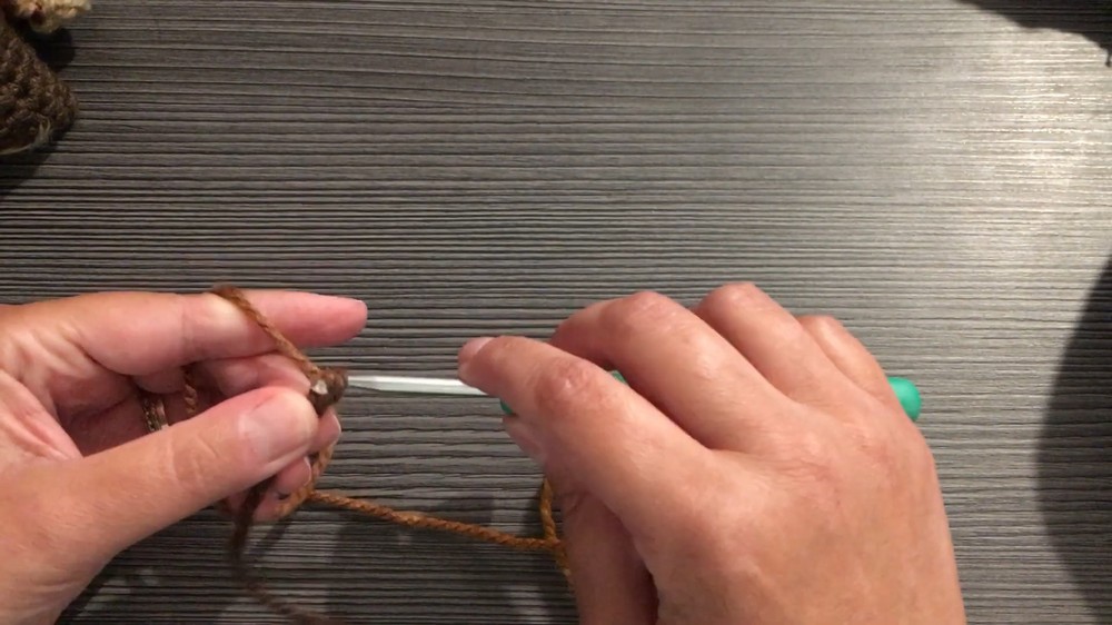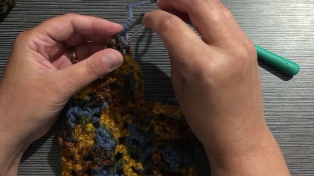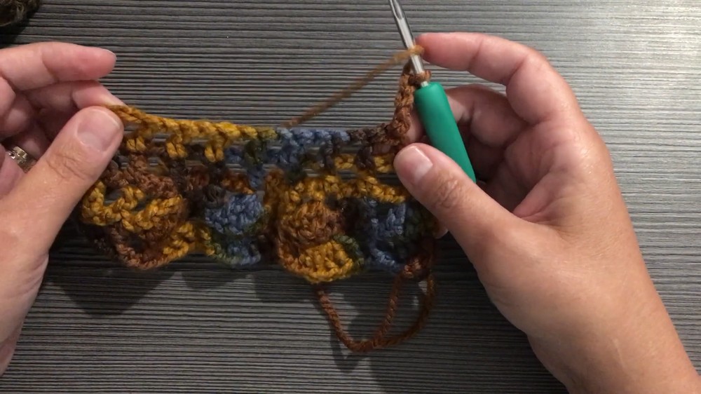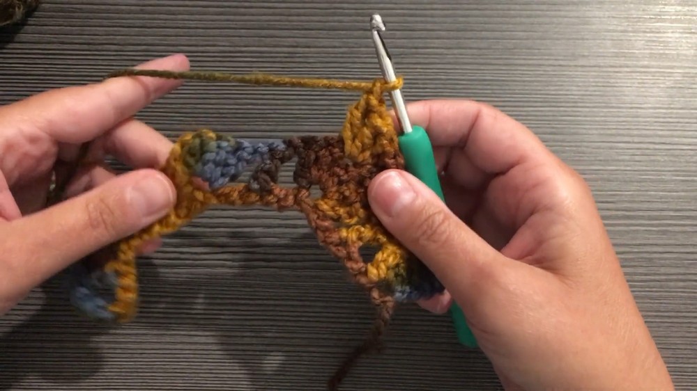 - Create a slip knot and reattach the yarn to the bottom foundation row.