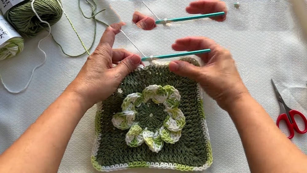 Learn how to crochet a textured TV mat with a floral trivet with square pop design, perfect for adding a handmade touch to your home. Using 100% cotton yarn in two colors (solid olive garden and pear ombre) and a 5mm crochet hook, Cleop walks through eight detailed rounds to create a 7.5-inch square piece, featuring chain loops, petals, and corner detailing. Ideal for beginners, the tutorial is clear, concise, and easy to follow!