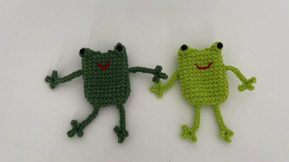 In this tutorial, learn how to crochet an adorable AirPod pouch shaped like a frog for beginners. The step-by-step guide includes creating the pouch body using single crochet techniques, forming legs with chain and slip stitches, and adding a buttoned closure. Detailed instructions for decorative elements, such as attaching eyes and stitching a smile, bring the pouch to life.