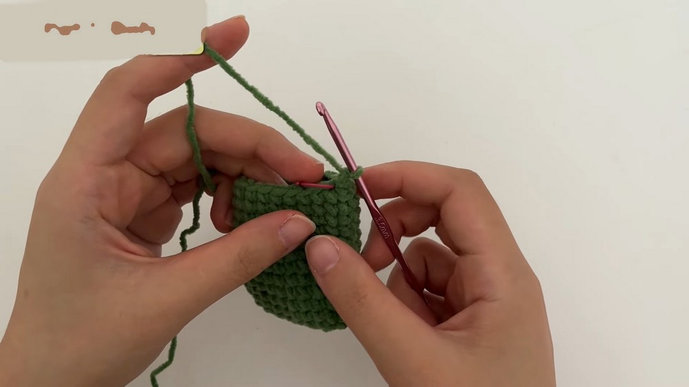 - Attach yarn between specific rounds of the body to begin crocheting the legs.