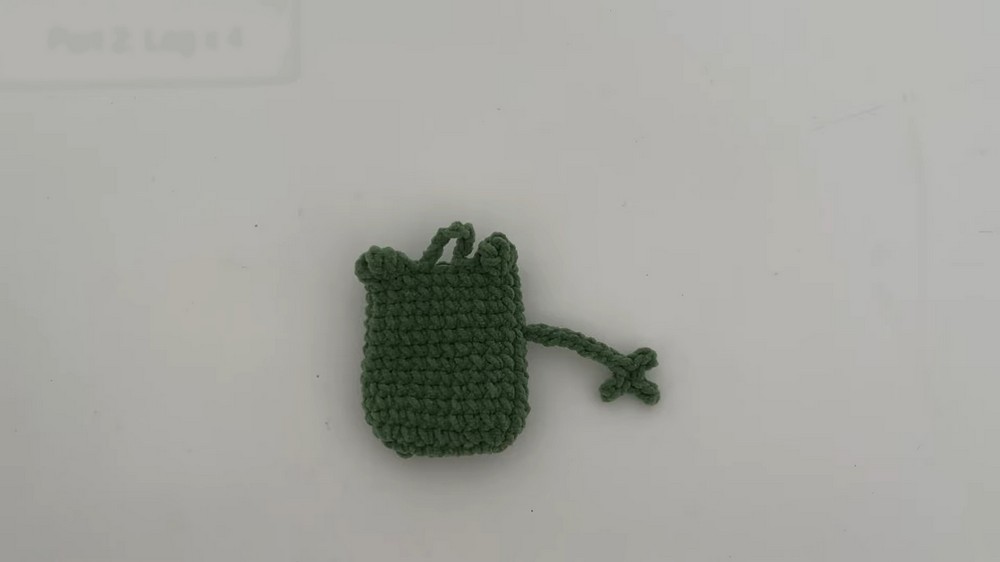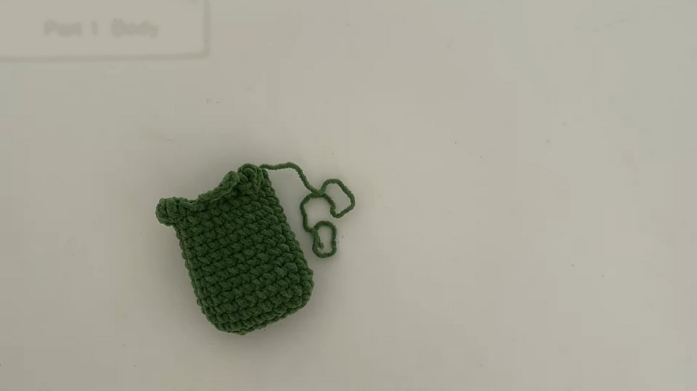 - Continue working in rounds, using single crochets and increases to expand and shape the pouch.