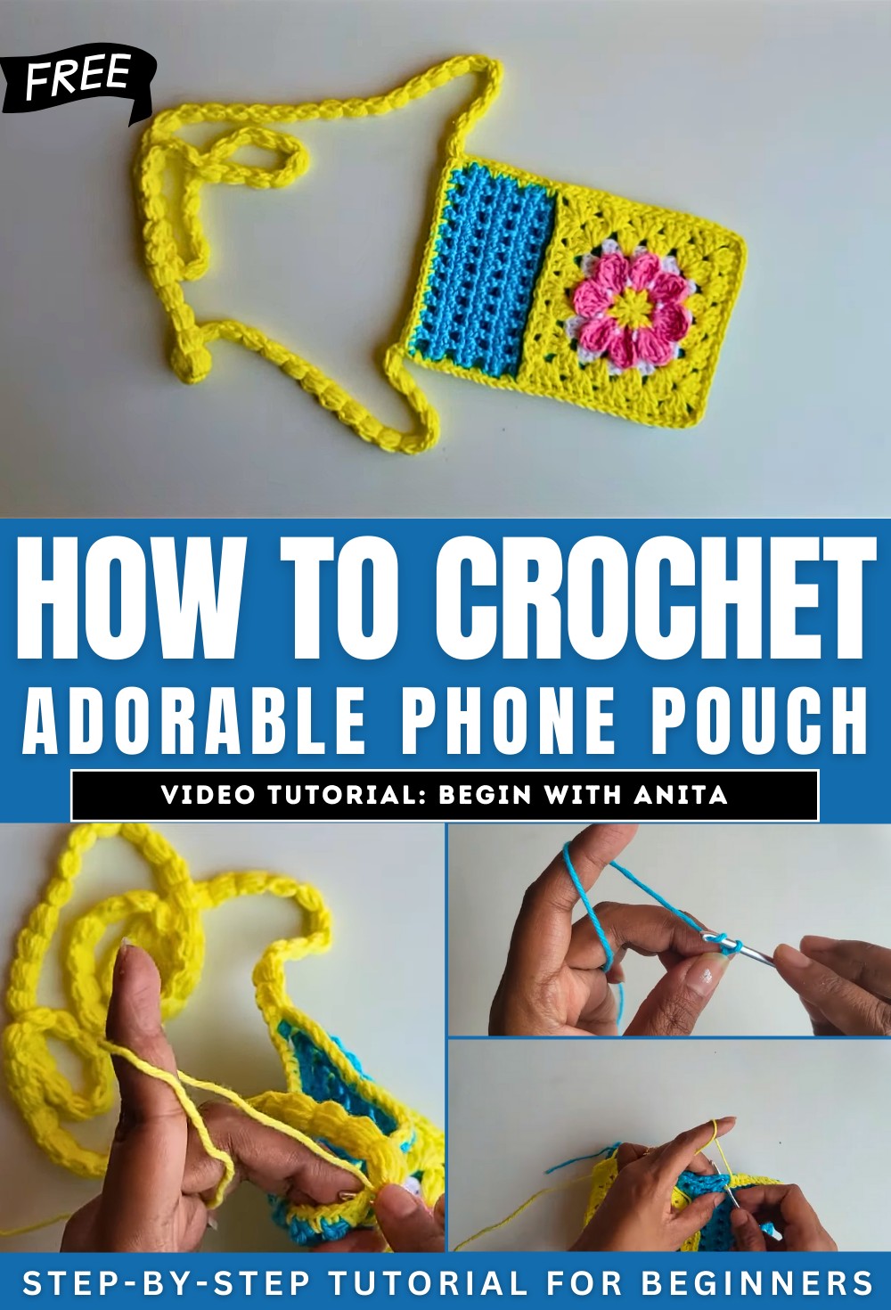 Learn how to crochet a sling bag or phone pouch with two compartments for beginners and experts. The creator, Anita, makes the bag in a colorful pattern. The video begins by explaining how to create the foundation with a slip knot and chain stitches, followed by the first two main panels. It then shows how to create a decorative floral granny square for the top portion of the bag.