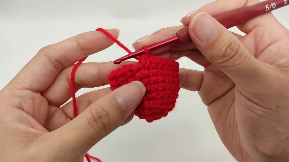 - Once the cup structure is complete, the yarn is cut, and the ends are hidden.