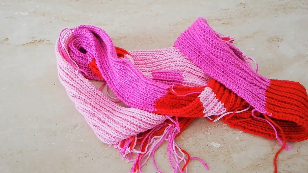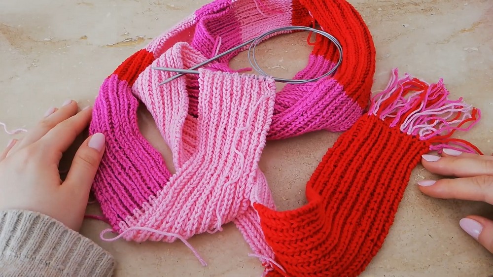 The tutorial also covers seamless color changes, binding off stitches, adding tassels, and weaving in loose ends for a polished finish. The completed scarf is 210 cm long and 6.5 cm wide. So, follow through with us for the complete tutorial.
