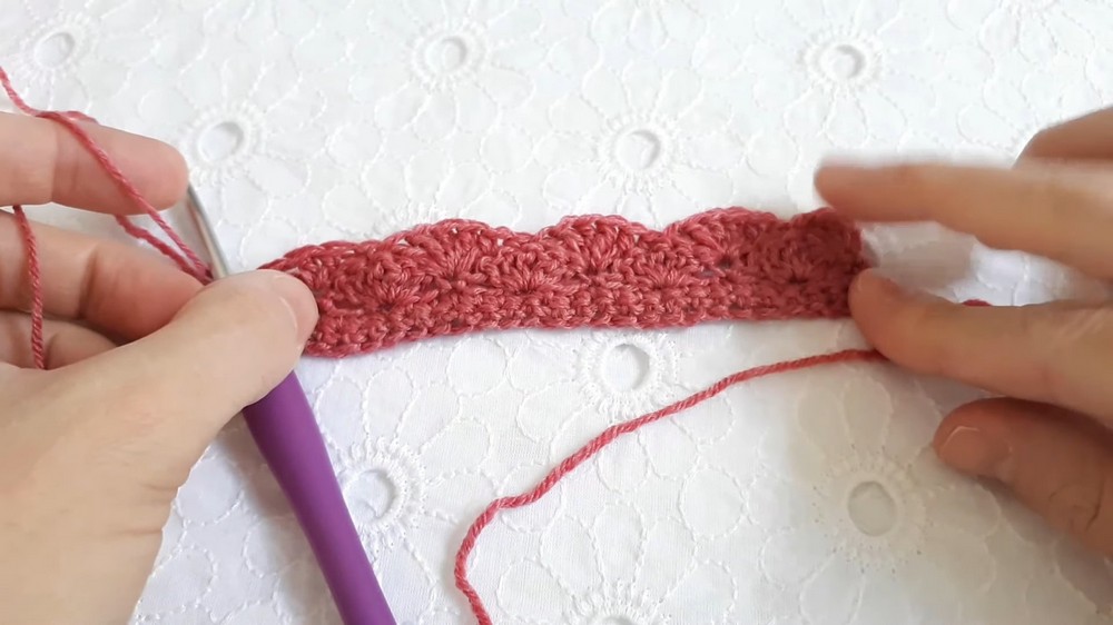- The creator demonstrates how to use single crochet stitches to securely join the edges of the headband.