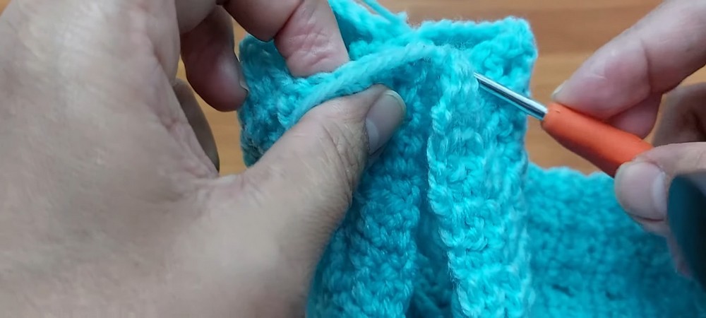 - Lay the finished crochet piece flat, determining the right and wrong sides.