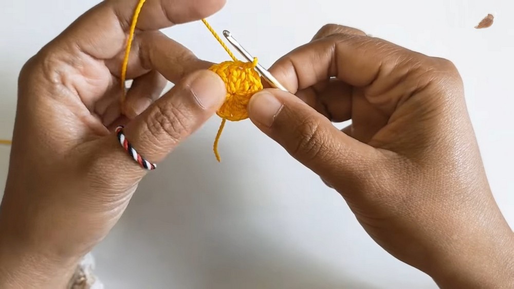 - The ears are created by making a magic ring and adding half double crochet stitches.